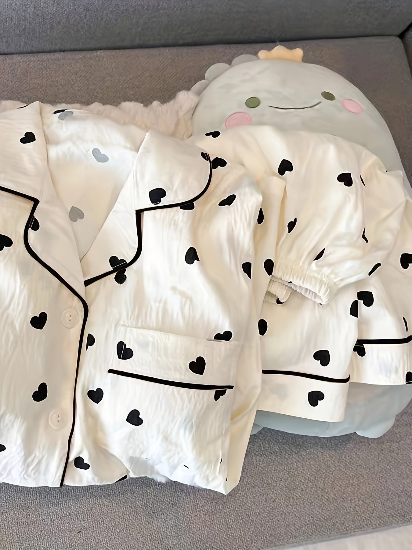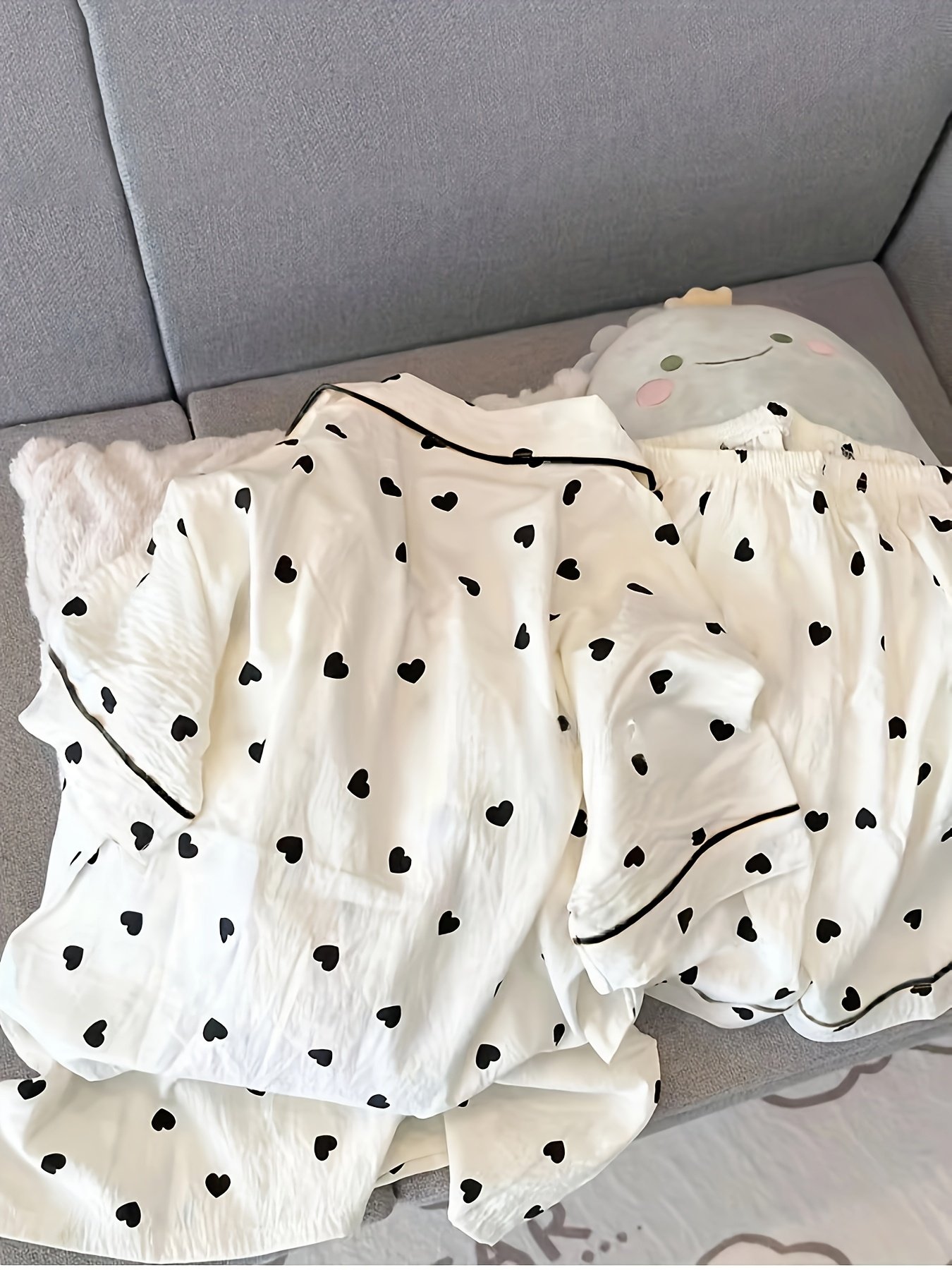 Pijama Feminino de Verão, Estilo Fino, Shorts de Manga Curta Com Estampa de Coração, Fofo e Fofo, Pode Ser Usado Ao ar Livre no Verão, Conjunto de Roupas para Casa, Conjunto de Duas Peças.