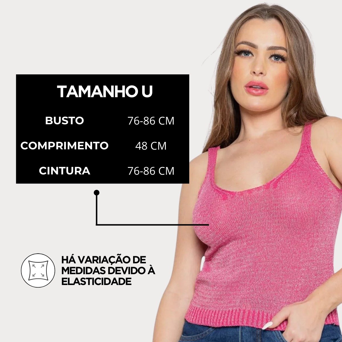 Conteúdo da Embalagem: 1 Regata Tricot Lurex Canelada Leve e Confortável Casual