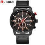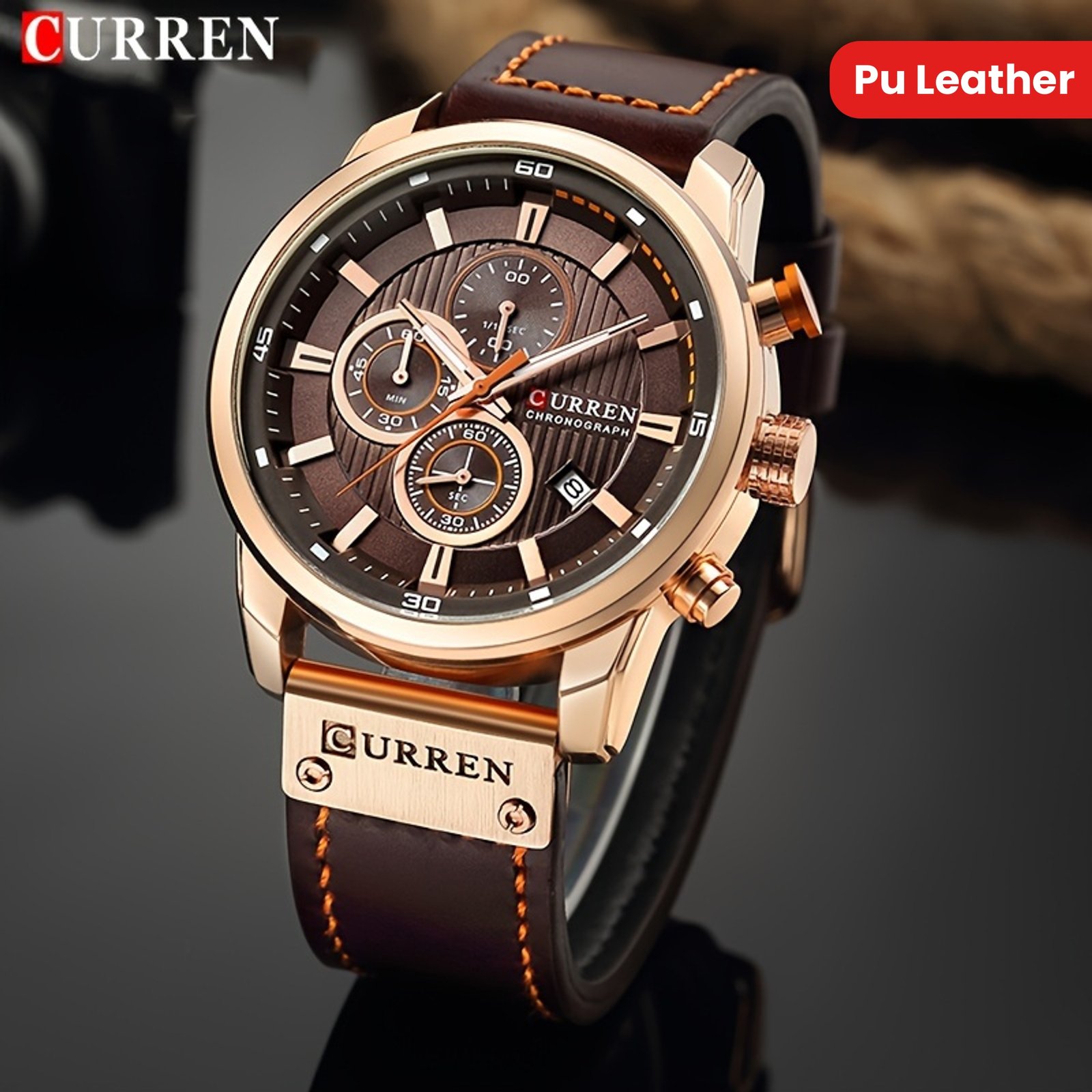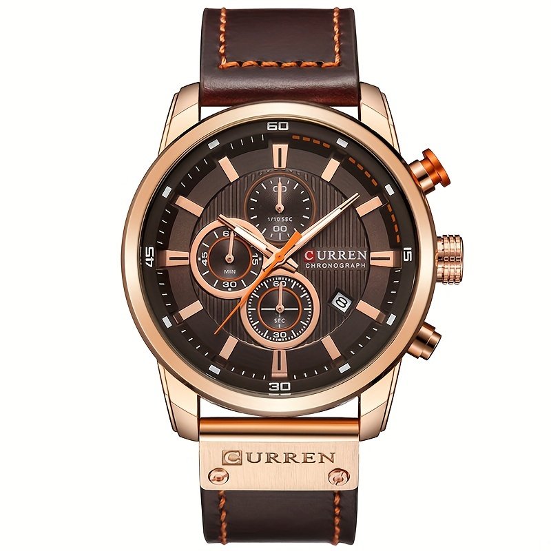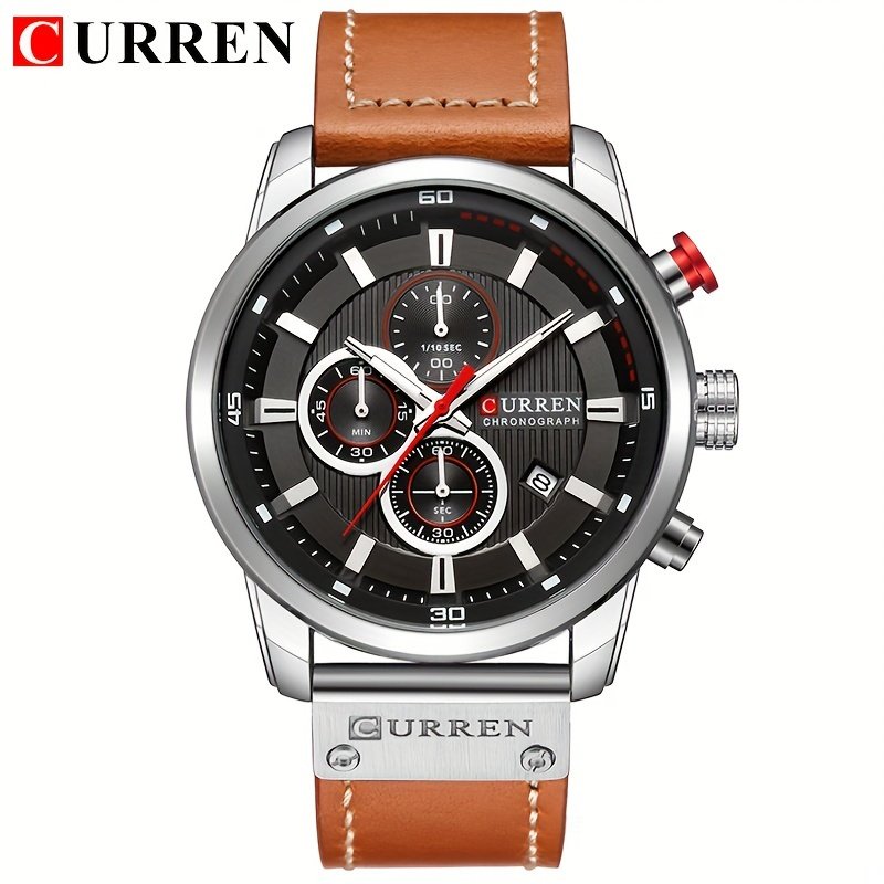 Relógio Esportivo Masculino Com Múltiplas Funções, Pulseira de Couro PU e Exibição Automática da Data.