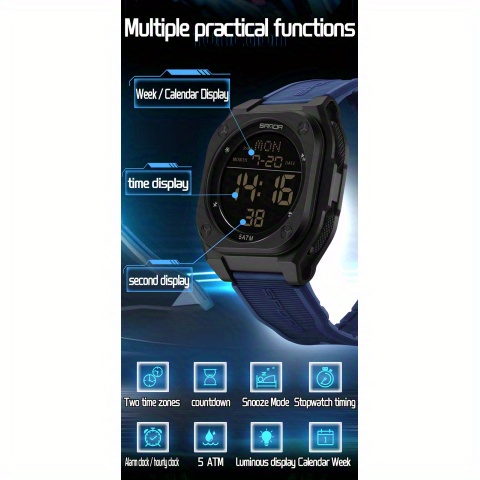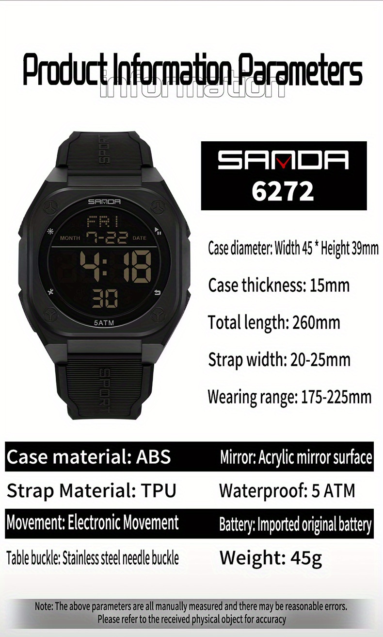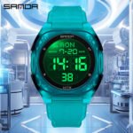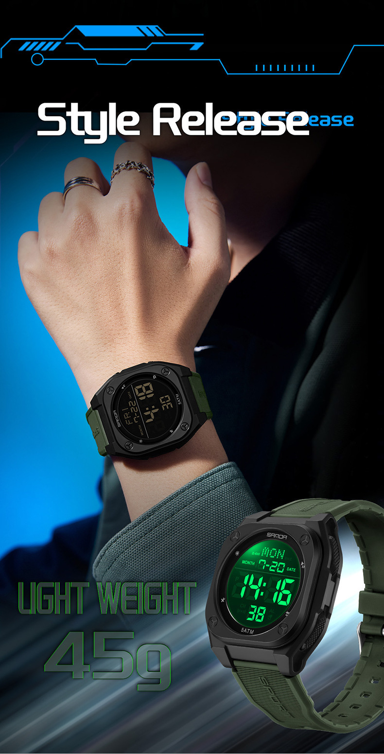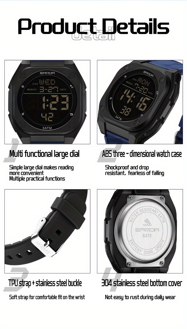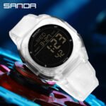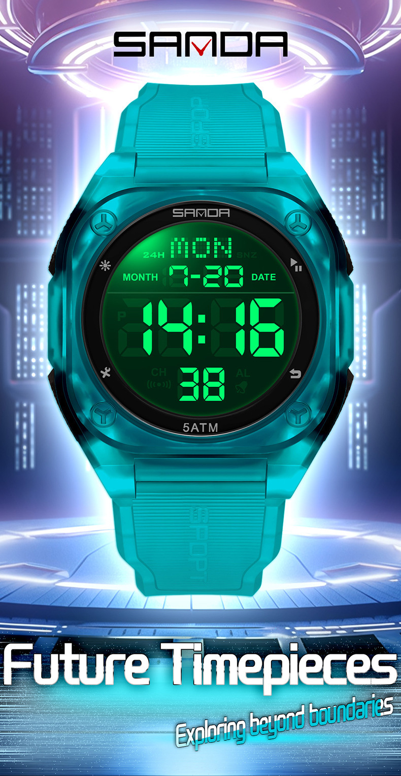 Especificações: Propriedades da Bateria: Bateria Não Recarregável Marca: Sanda Formato do Mostrador: Redondo Tipo de Visor: Digital Modo de Funcionamento: Eletrônico Funções: Data; Cronômetro; Despertador Mecanismo: Relógio Digital Bateria Não Recarregável: Bateria Tipo Botão (diâmetro < 20 Mm) Tensão de Operação: ≤ 36 v Modo de Alimentação: Alimentado por Bateria Material da Pulseira: TPU Estilo: Esportivo Material da Caixa do Relógio: Resina Sintética Nível de Resistência à Água: 50 m Instruções de Uso: Outras