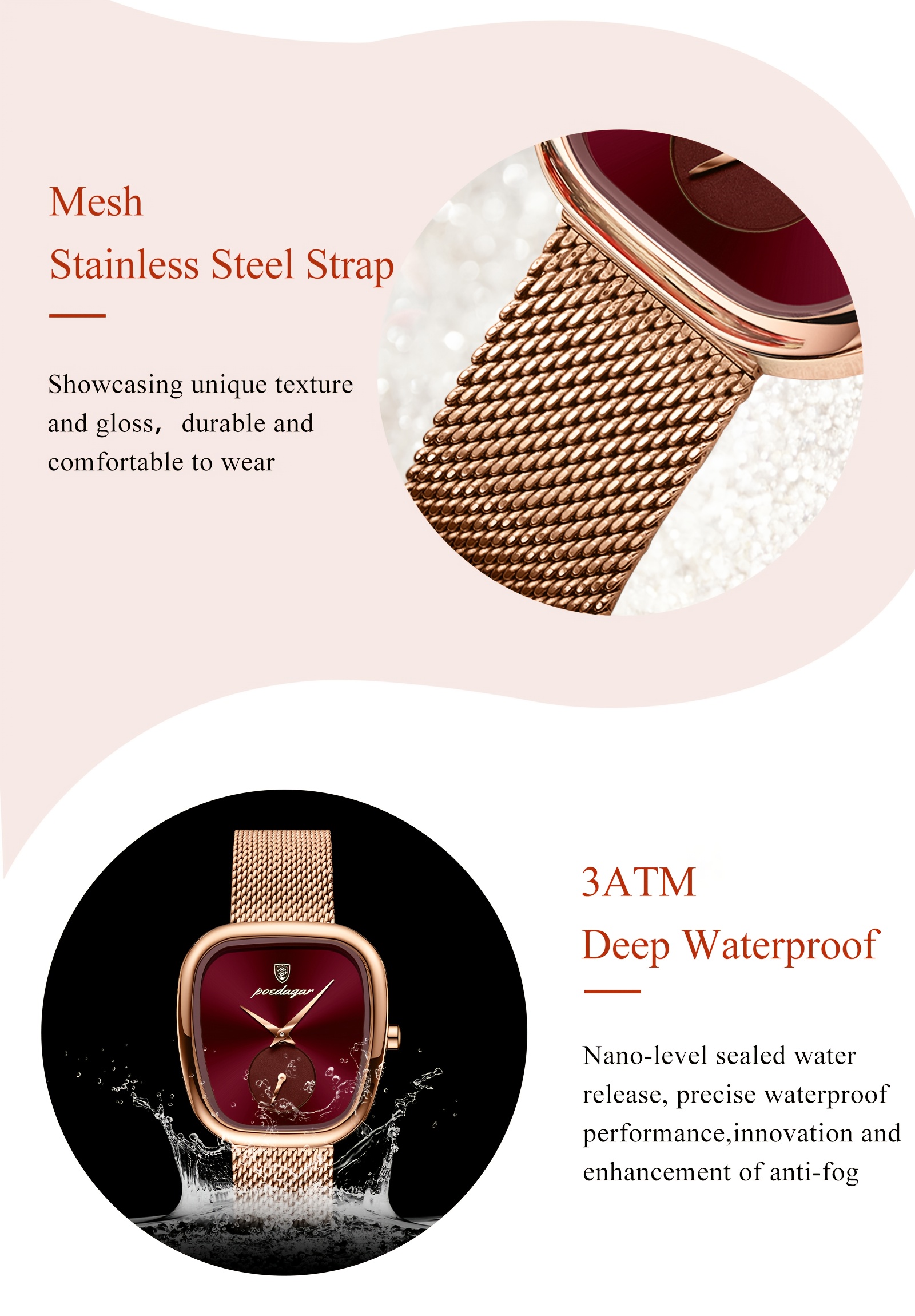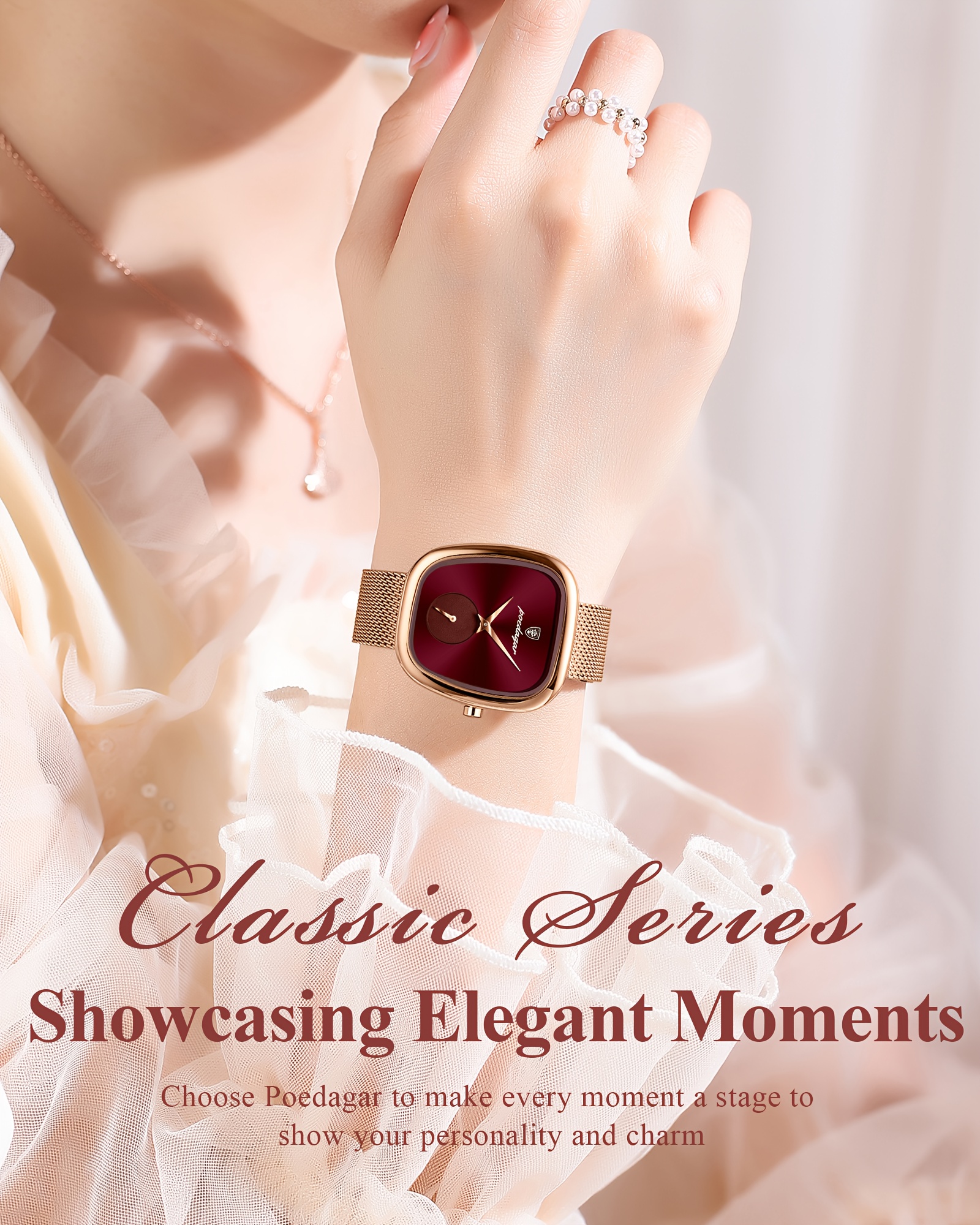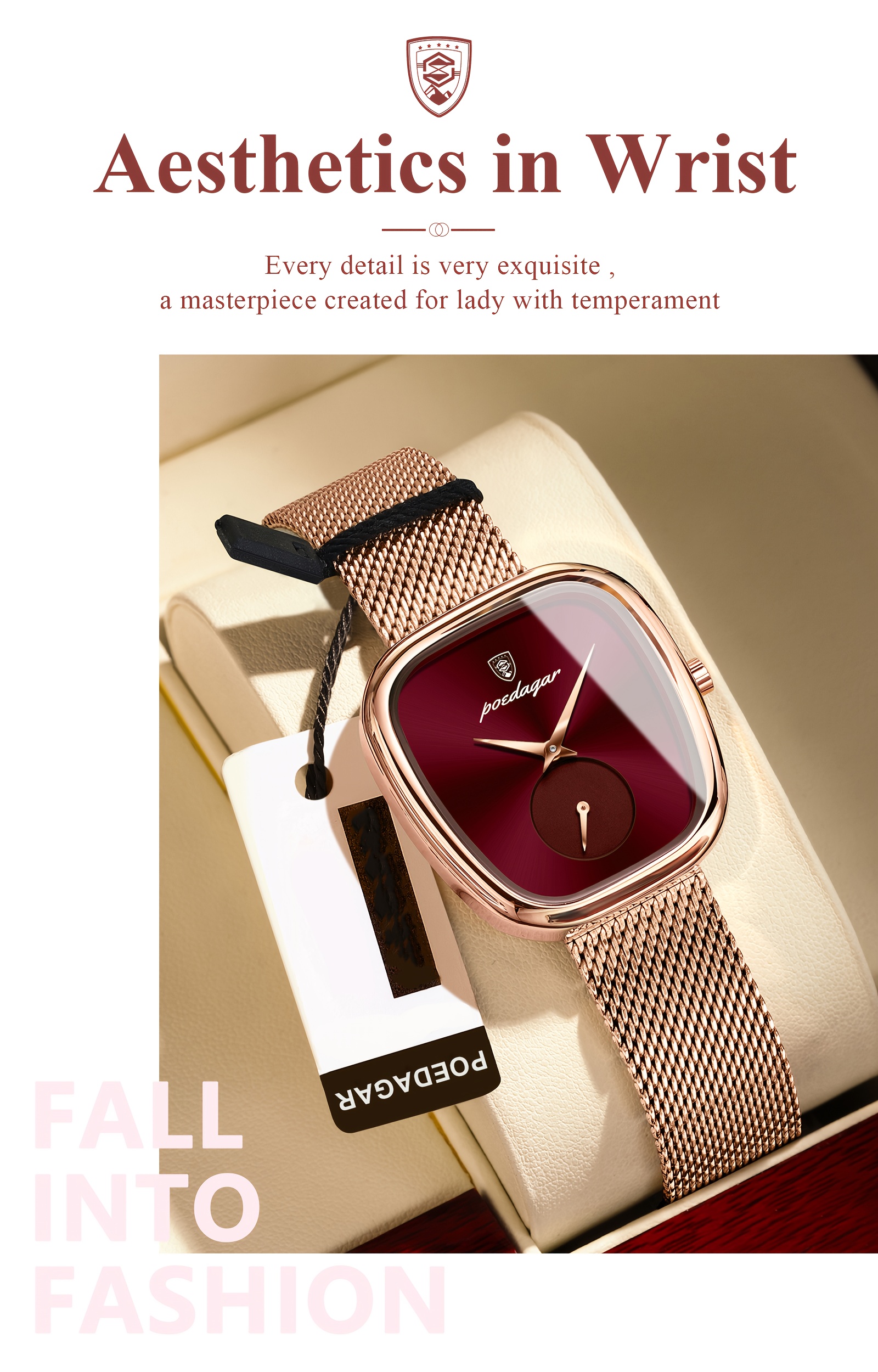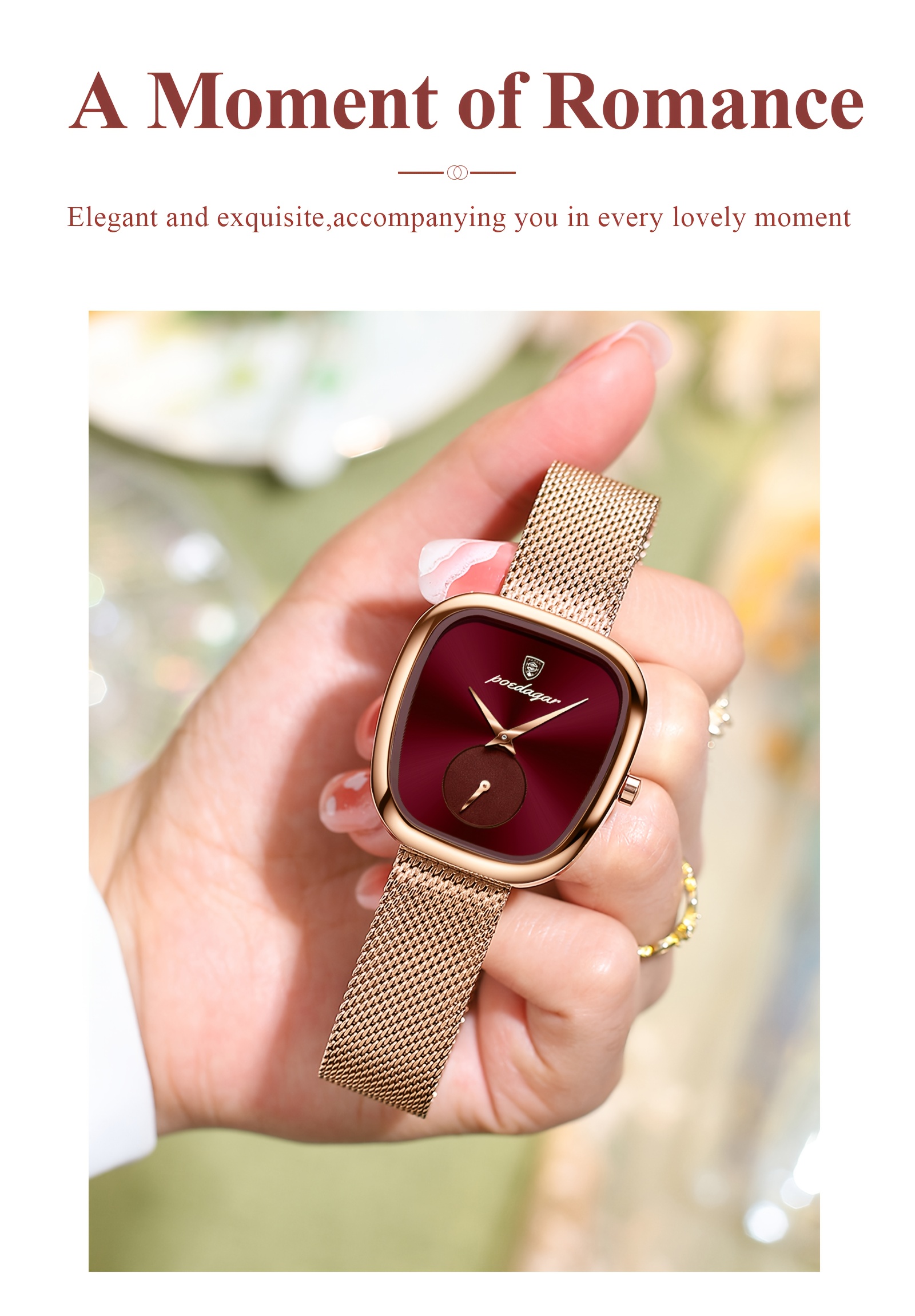 Especificações: Faixa Etária Recomendada: Acima de 15 Anos Características da Bateria: Bateria Não Recarregável Marca: Poedagar Cor: Dourado Rosê Método de Conexão: Nenhum Formato do Mostrador: Quadrado Tipo de Exibição: Ponteiro Modo de Funcionamento: Eletrônico Pureza do Material: Não é Metal Precioso Movimento: Relógios de Quartzo Bateria Não Recarregável: Bateria de Botão (Diâmetro < 20 Mm) Tensão de Operação: ≤ 36 v Modo de Alimentação: Alimentado por Bateria Material da Pulseira: Aço Inoxidável Estilo: Elegante Material da Caixa do Relógio: Liga Metálica Nível de Resistência à Água: 30 m