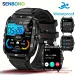 Relógio Inteligente SENBONO para Homens com Tela Sensível ao Toque de 4,98cm, Sem Fio para Fazer e Atender Chamadas, Resistente à Água IPX8, Bateria de 430mAh, Multiuso, Ideal para Homens e Mulheres, Resistente a Atividades ao Ar Livre, com Notificações e Previsão do Tempo.