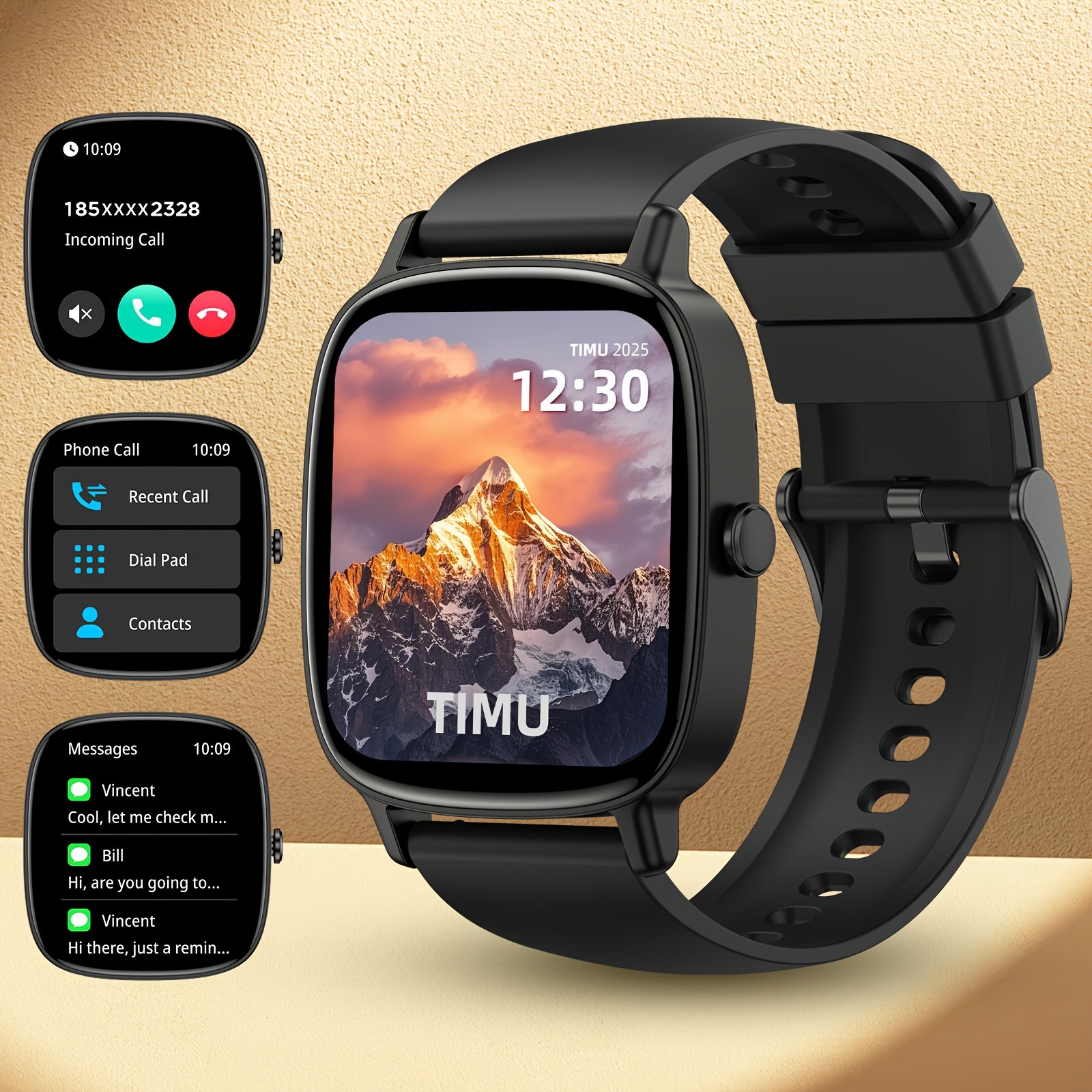Especificações: Características da Bateria: Bateria Recarregável Marca: Timu Tensão de Operação: ≤36v Modo de Alimentação: Alimentação por Bateria / USB (Uso Duplo) Bateria Recarregável: Bateria de Polímero de Lítio Material da Tela: TFT Tamanho da Tela: 1,85 Polegadas Material da Pulseira: Silicone Chip do Relógio: Realtek8763ewe Conectividade Sem Fio: Sem Fio