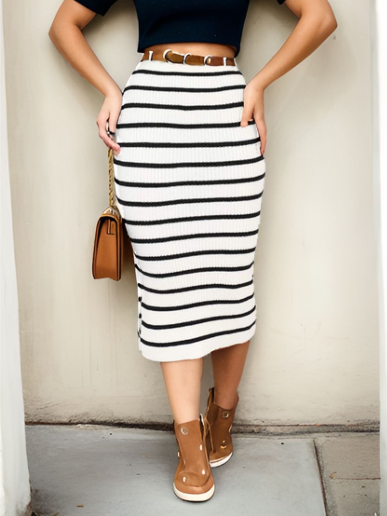Conteúdo da Embalagem: 1 Saia Tricot Modal Midi Tubinho Listra