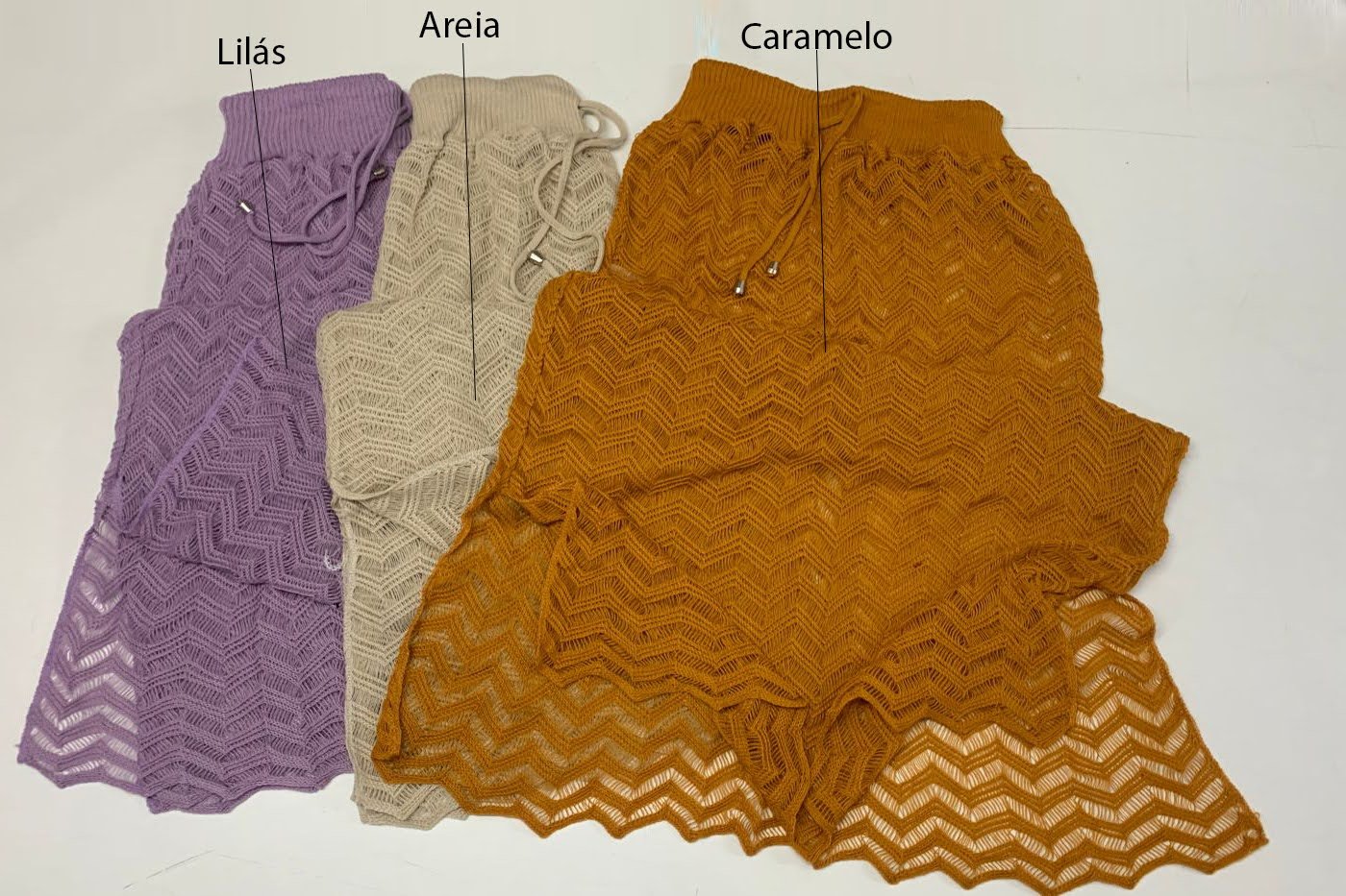 Saia Tricot Saída de Praia. Confeccionado em tricot vazado, datalhe zig-zag. Casual e confortável.