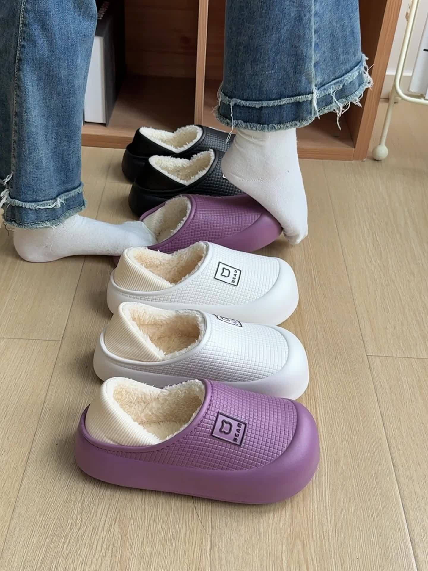 Sapatos Femininos Sem Cadarço para Usar Em Casa - Pantufas Com Sola Grossa e Acolchoada, Construção Em Eva Macio, Calçados para Ambientes Internos Em Preto/ - Calor de Inverno para Casa, Sala de Estar, Quarto - Aderência Controlada Fácil de Limpar, Pantufas Femininas, Design Interior Luxuoso, Palmilha Forrada Com Tecido.
