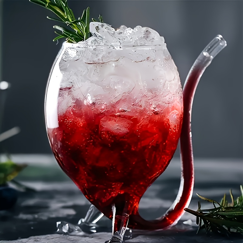 Início Utilitários do Lar Artigos de Cozinha Shaon 1 Peça de Copo de Vinho Irregular, Copo de Vinho de Vidro Estilo Vampiro Com Canudo Embutido, Copo de Coquetel Criativo, Adequado para Suco, Vinho, Artigos para Festas, Camping, Presentes de Aniversário, Copos de Água para Casais, Presentes de Feriado.