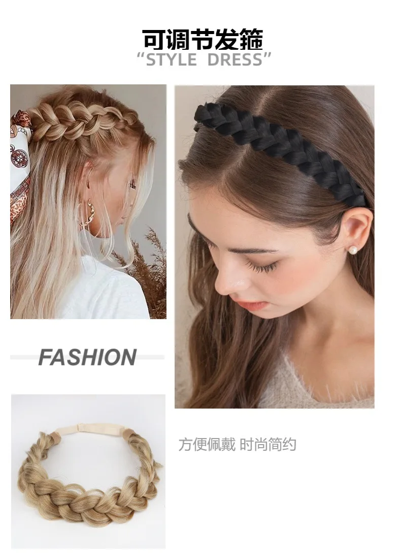 Sintético Premium Ajustável Artesanal Trançado Elástico Faixa de Cabelo Moda Trança Faixa de Cabelo Headwear p/ Mulher.