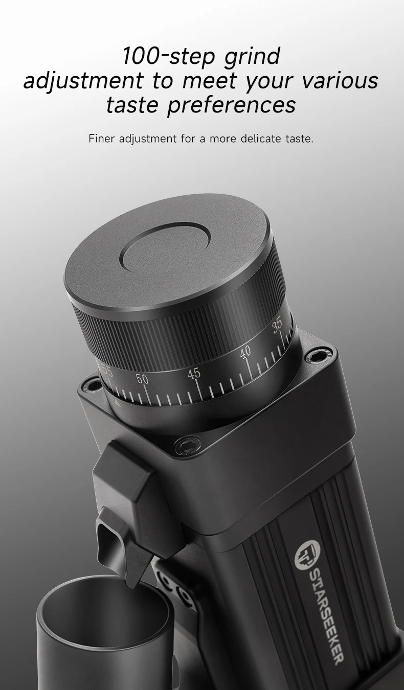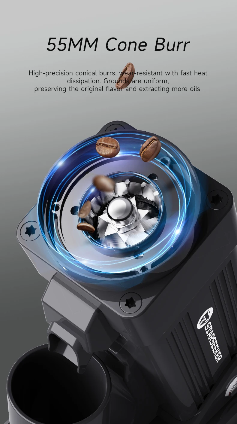 Starseeker E55 Moedor de Café Elétrico 55mm Cone de Café Expresso Rebarba Ajuste de Finura Contínua Moedor de Feijão de Fermentação Fria Tira Preta.