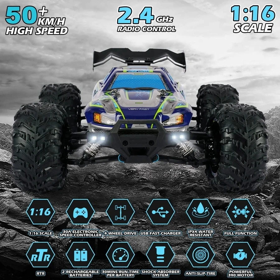 ** Carro 50-80km/h Super Rápido e 4×4: o Rc Rápido Pode Chegar a Mais de 80 Km/h, o Que Torna a Corrida do Carro Mais Rápida do Que Outros.