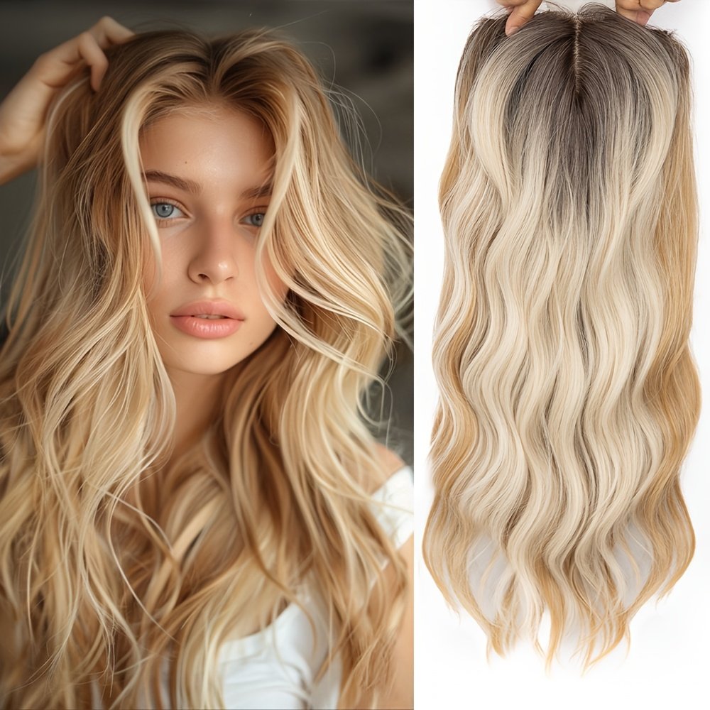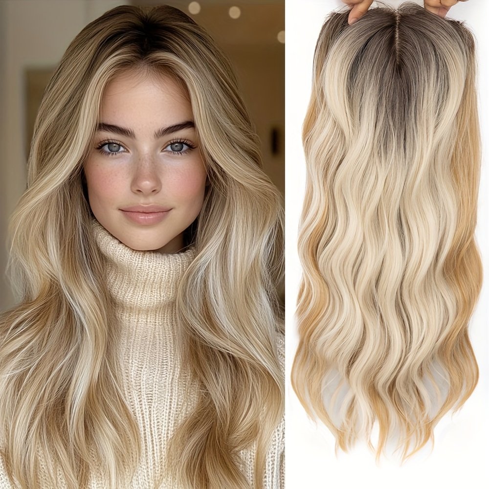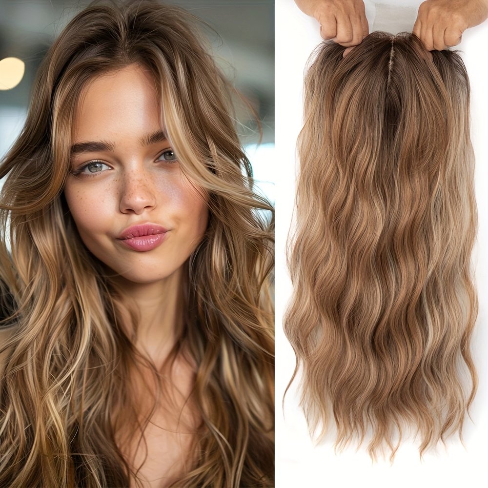 Toppers de Cabelo para Mulheres, 50,8 Cm, Ondulados, para Mulheres, Peças de Cabelo para Mulheres Com Cabelos Ralos, Peruca Sintética Com Mechas Ombré, Prendedor de Cabelo, Perucas Com Franja, Adiciona Volume Ao Cabelo.