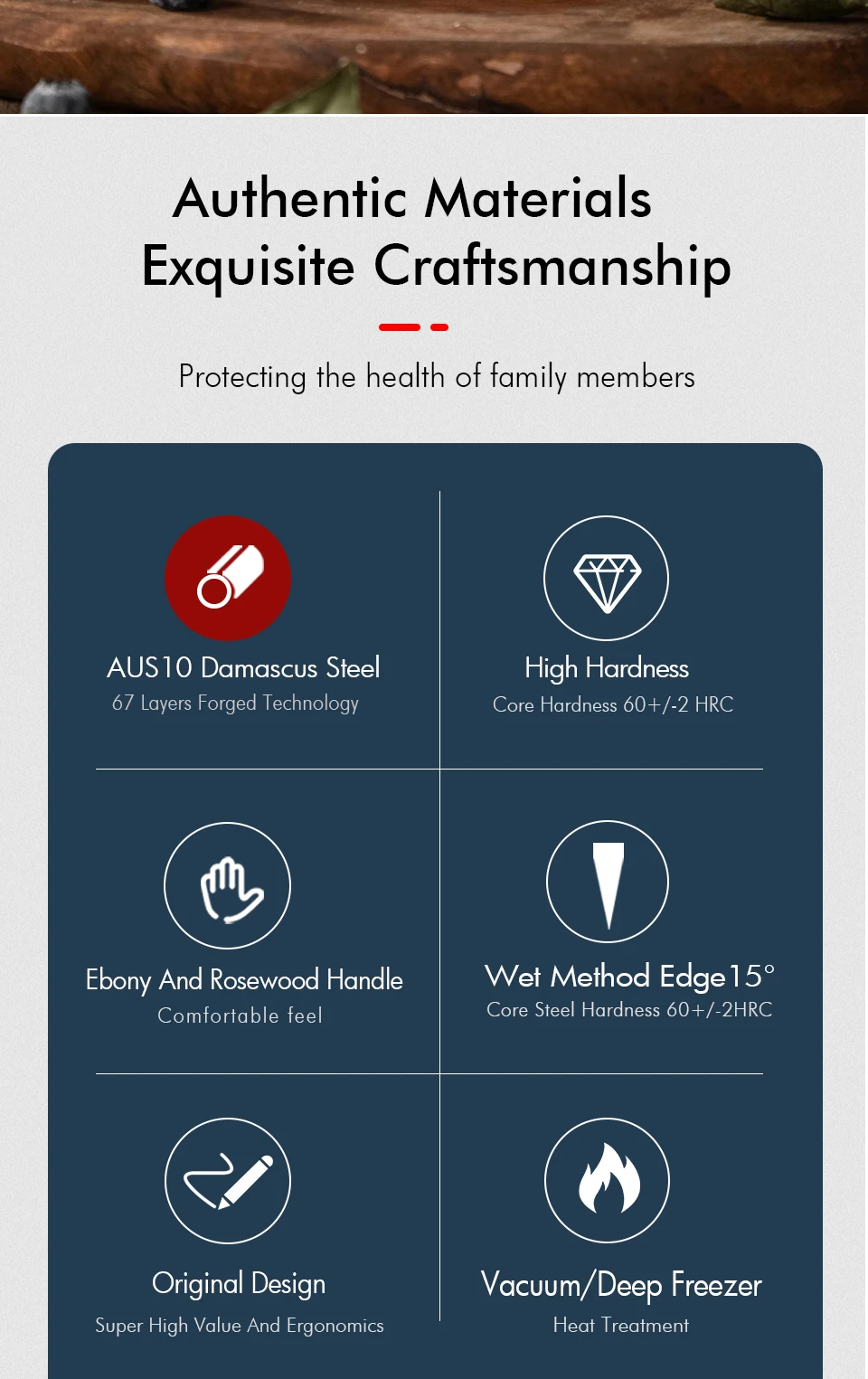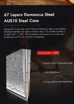 Material da Lâmina: 67 Camadas de Aço Damasco Aus-10