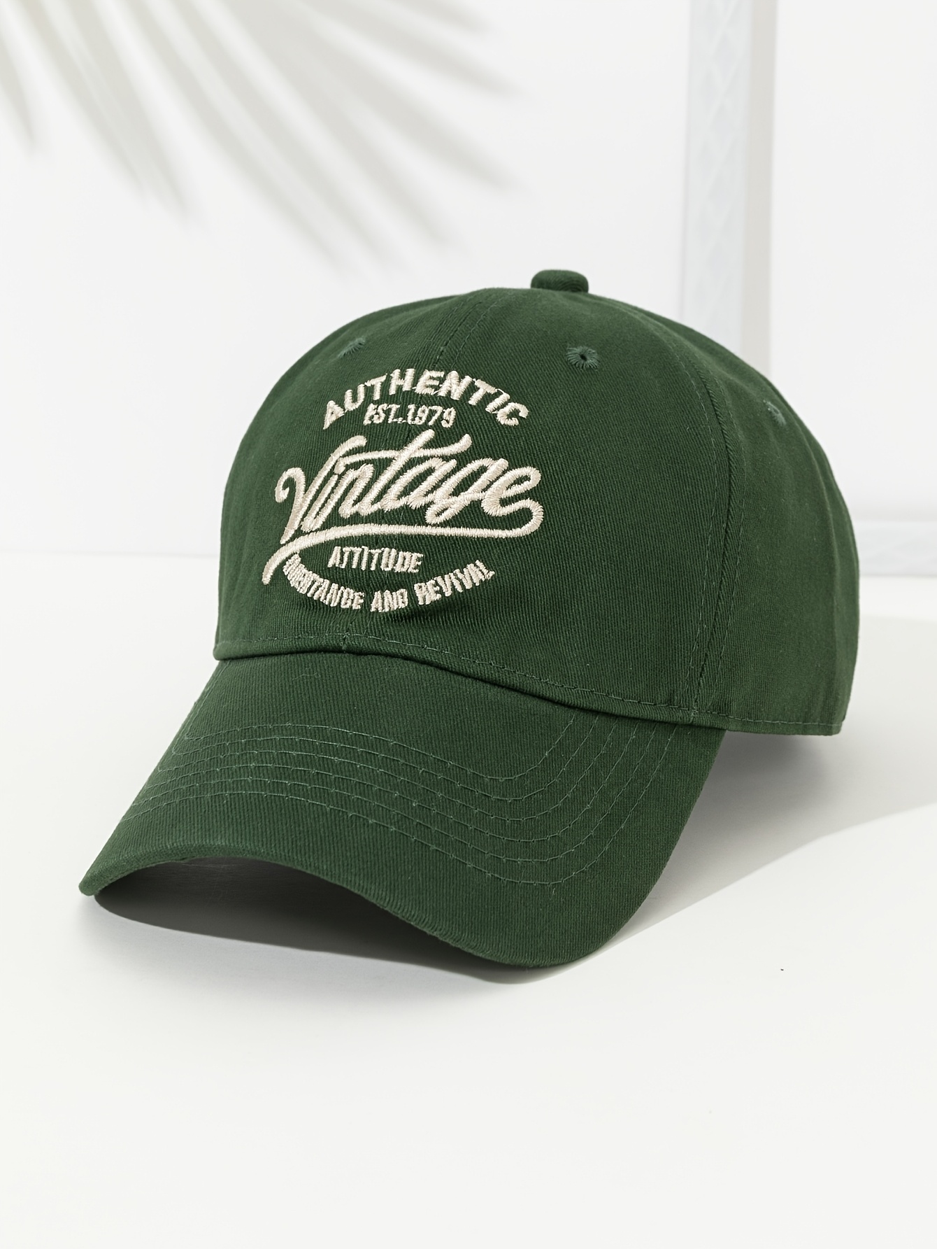 Green large letter embroidery all-match casual baseball cap (Boné de beisebol casual verde com bordado de letras grandes, perfeito para qualquer ocasião). |