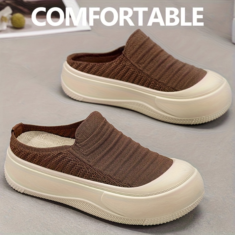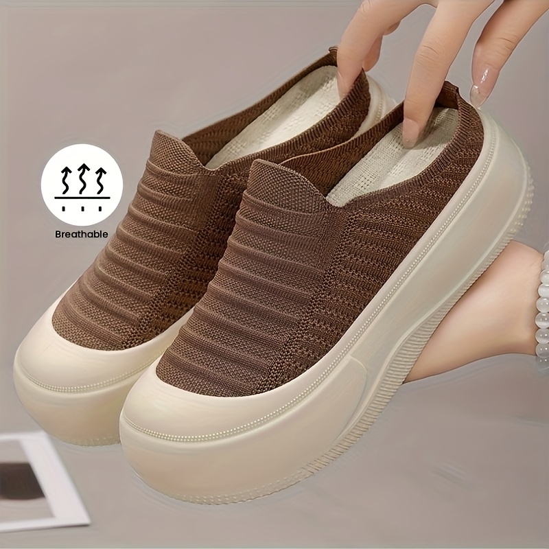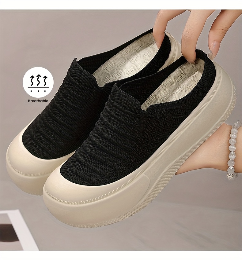 Um Par de Sapatos Baixos Elegantes para Mulheres – Sapatos de Verão Respiráveis com Sola Grossa – Sapatos Fechados para Atividades Ao ar Livre – Sapatos de Boca Rasa de Cor Sólida Com Aumento de Altura e Um Suporte Simples e Macio na Metade Inferior. Itens Essenciais para Viagens de Verão | Alturas de Bloco Baixas | Borracha Tátil.