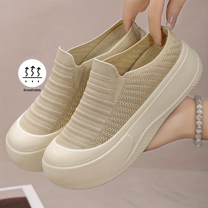 Primavera Sapatos Femininos Tricô Meia Tênis Feminino Sapatos Planos Casuais Respirável Tênis Apartamentos Sapatos de Caminhada para Mulher.