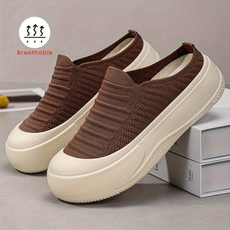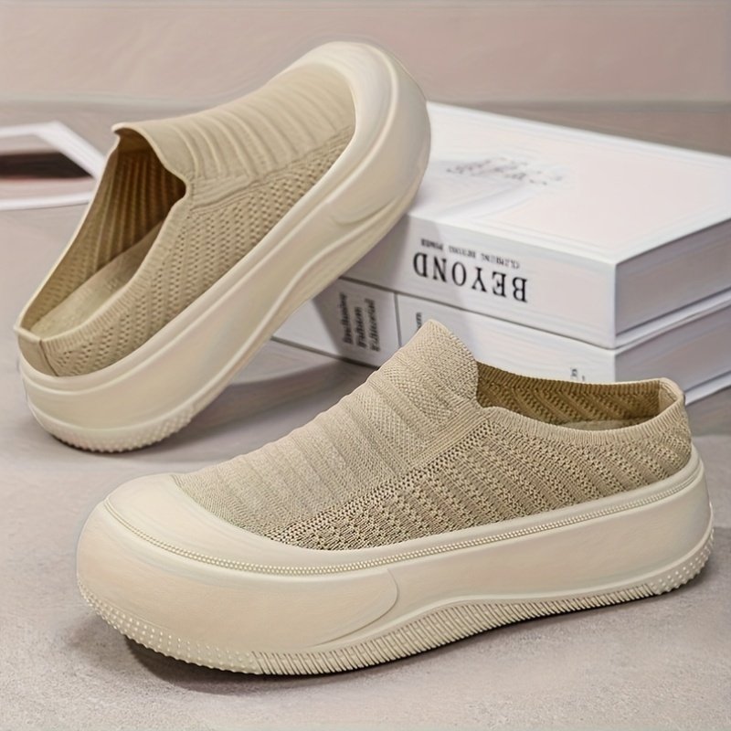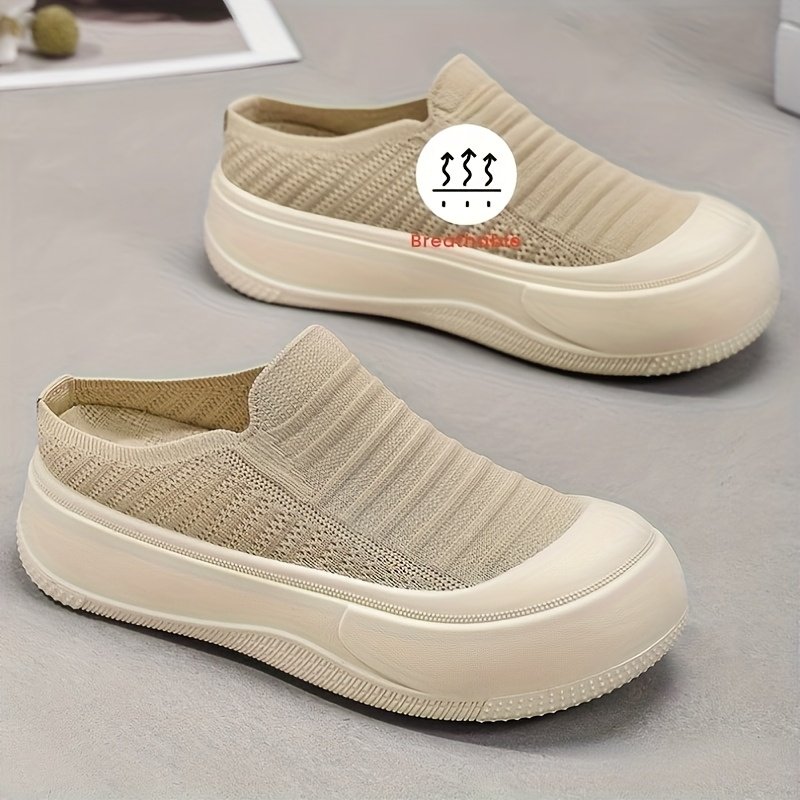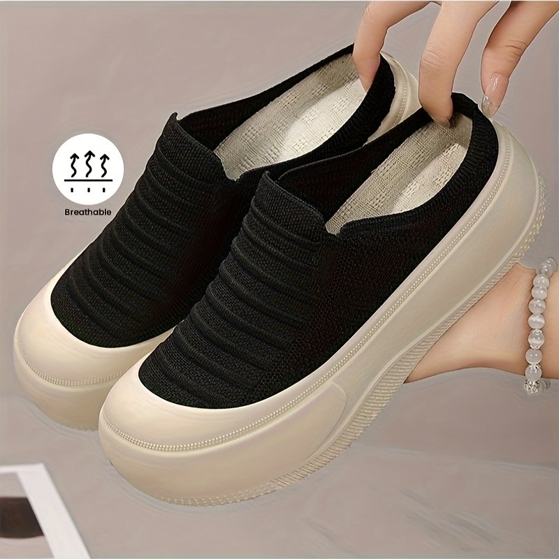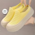 Um Par de Sapatos Baixos Elegantes para Mulheres – Sapatos de Verão Respiráveis com Sola Grossa – Sapatos Fechados para Atividades Ao ar Livre – Sapatos de Boca Rasa de Cor Sólida Com Aumento de Altura e Um Suporte Simples e Macio na Metade Inferior. Itens Essenciais para Viagens de Verão | Alturas de Bloco Baixas | Borracha Tátil.