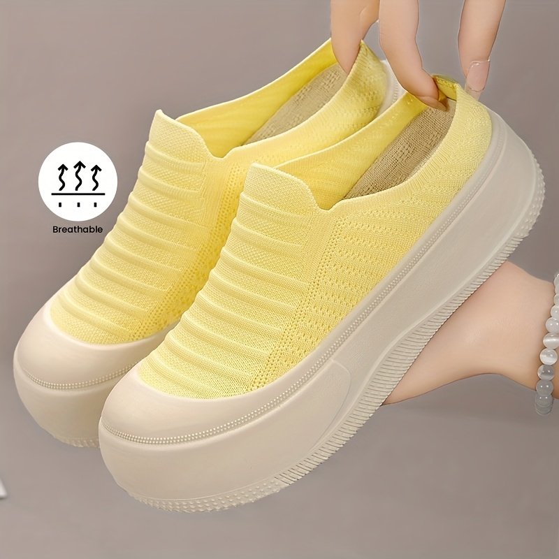 Primavera Sapatos Femininos Tricô Meia Tênis Feminino Sapatos Planos Casuais Respirável Tênis Apartamentos Sapatos de Caminhada para Mulher.