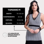 Vestido Curto Tricot Decote Trançado Alça, uma peça que combina estilo, elegância e conforto, perfeita para você arrasar em diversas ocasiões. Confeccionado para você se sentir linda e confiante, este vestido une um design moderno com detalhes encantadores. Detalhes que fazem toda a diferença: o tecido em tricot macio proporciona um caimento confortável, o decote V trançado valoriza o colo, as alças finas garantem delicadeza, a ausência de bojo oferece um caimento natural, a modelagem acinturada valoriza a silhueta, e o design preto com detalhes assimétricos adiciona um toque moderno e estiloso.