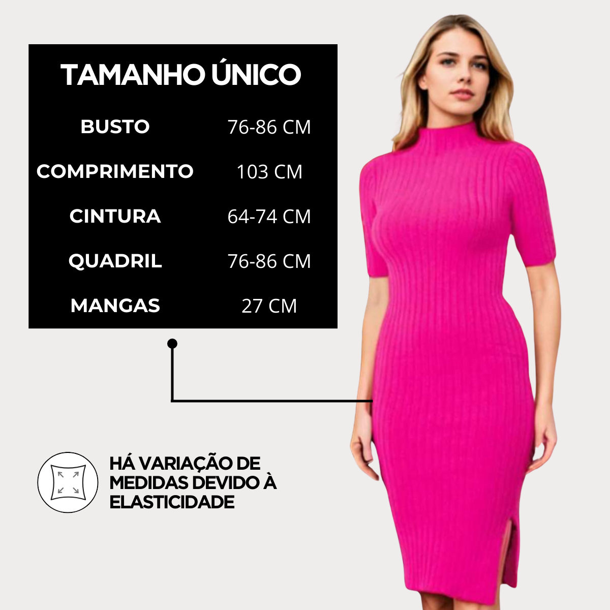 Palavras chaves: Vestido, Tricot, Tendência, Casual, Moda, Feminino, Versátil, Básico, Modal, Midi
