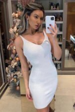Vestido confeccionado em tricot canelado. Vestido curto de tricot, possui alças finas e tecido canelado. Modelo super leve e com caimento perfeito. Modelo ideal para os dias mais quentes.