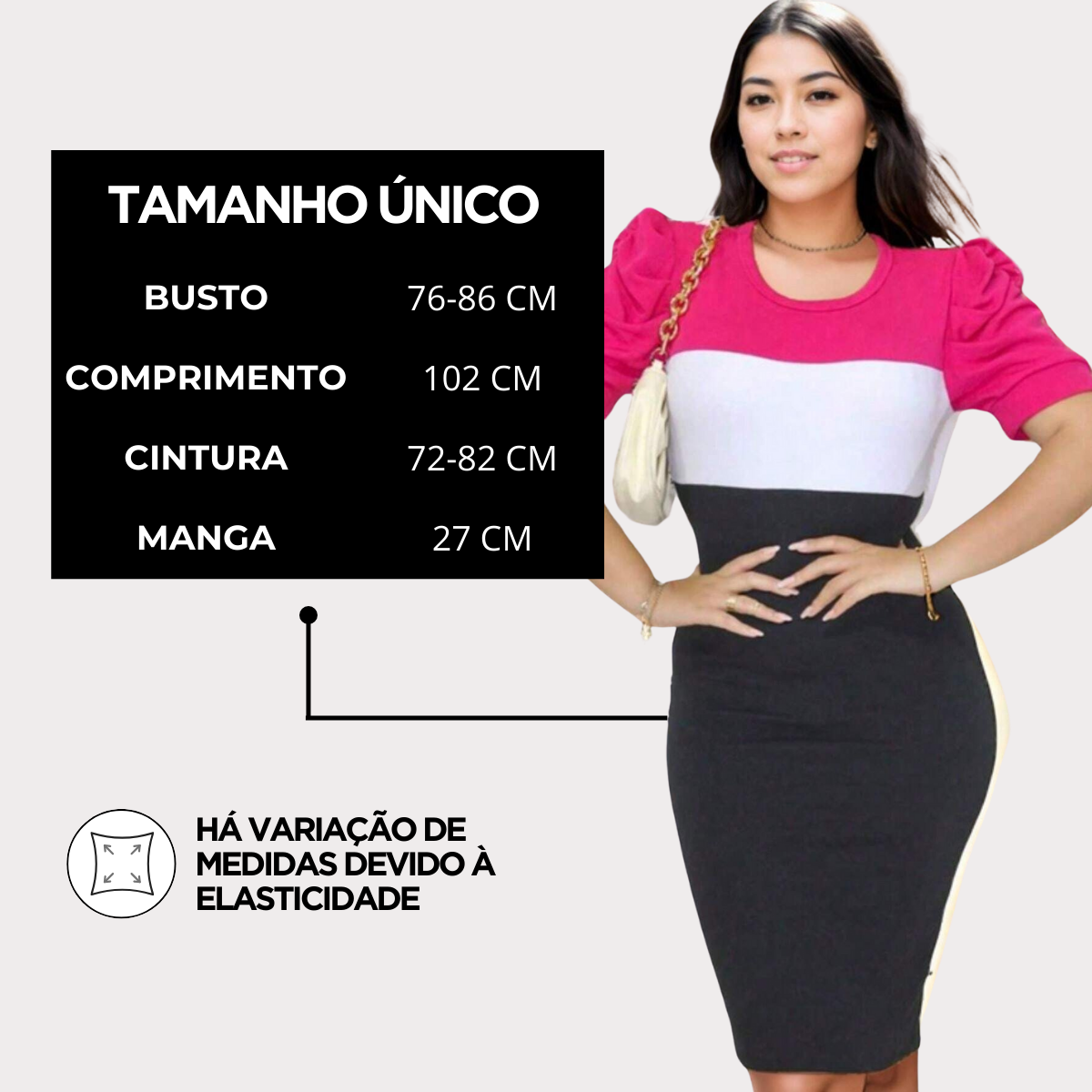 O Vestido Feminino Midi de Tricô Evangélico Manga Curta Tricolor é uma peça que une elegância, conforto e versatilidade, perfeita para compor looks clássicos e sofisticados. Confeccionado em tricô de alta qualidade, este vestido oferece um caimento impecável e uma textura macia que proporciona conforto durante todo o dia.