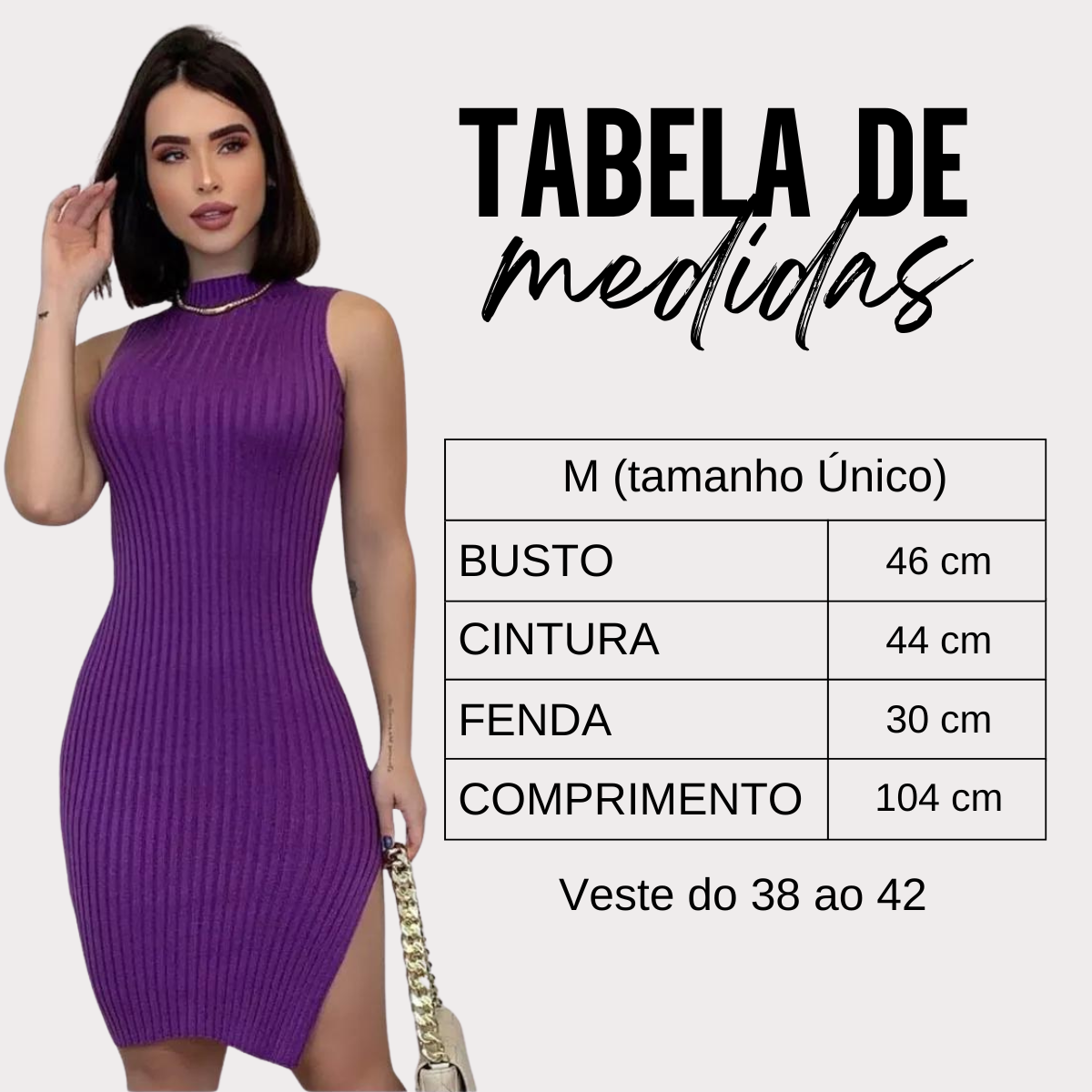 Conteúdo da Embalagem: 1 Vestido de Tricô Feminino Midi Modal Tubinho Sem Manga Colado Fenda Lateral com Gola