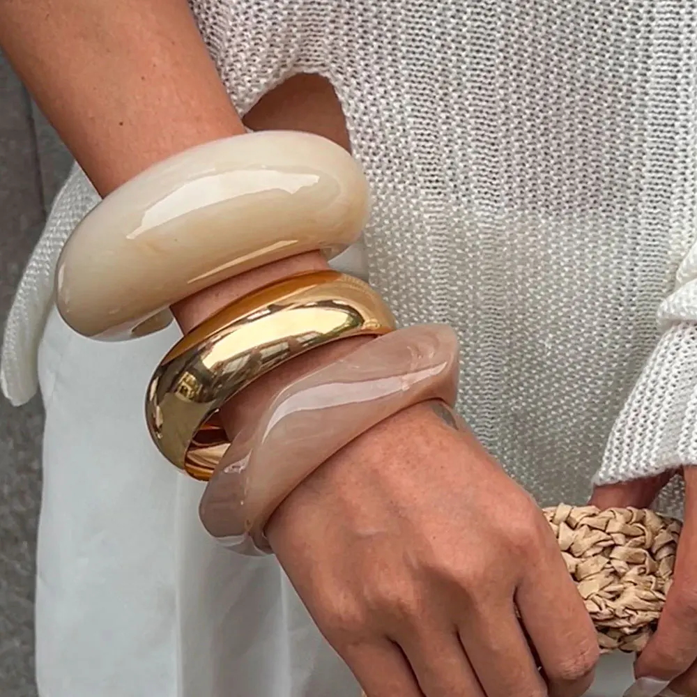 Vintage Punk Bege Cáqui Resina Grossa Acrílicos Geométricas Irregulares Pulseiras e Jóias.